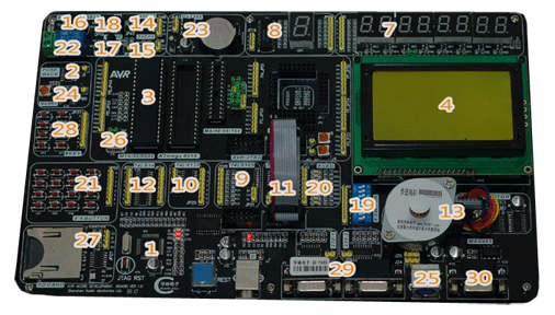 整機集成了所有單片機應(yīng)用中可能遇到的功能模塊部份,