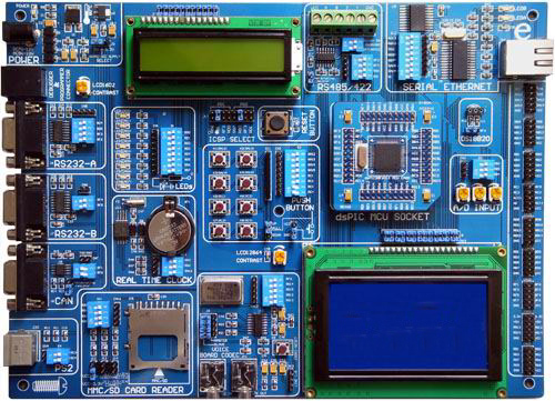 SHPIC3開(kāi)發(fā)板只需要更換相應(yīng)的主控板,便可以支持dsPIC24系列,dsPIC30系列和dsPIC33系列16位單片機(jī)。
