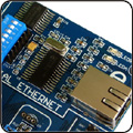 以太網(wǎng)控制器模塊--采用Microchip的ENC28J60芯片,通信完全符合IEEE802.3規(guī)格,最高可達(dá)10M的通信速率,通過(guò)兩中斷功能SPI接口實(shí)現(xiàn)與主控制器通信. |
