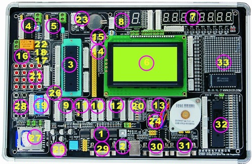 整機(jī)由以下數(shù)十個模塊組成,功能強(qiáng)勁令人嘆為觀止!集成了基本上所有單片機(jī)應(yīng)用中可能遇到的功能模塊部份,你再也不必要去找其他零件,即可輕松完成您所需要的開發(fā)任務(wù)。我敢打賭這是你目前見到的功能最強(qiáng)的51開發(fā)板(其中12864液晶率先成為系統(tǒng)的標(biāo)準(zhǔn)配置。僅此價格即超過百元!同時率先引入sd卡,485通信,can總線,漢字屏等等高端模塊,不象其他板子僅僅只能作幾個跑馬燈,數(shù)碼管實驗)
